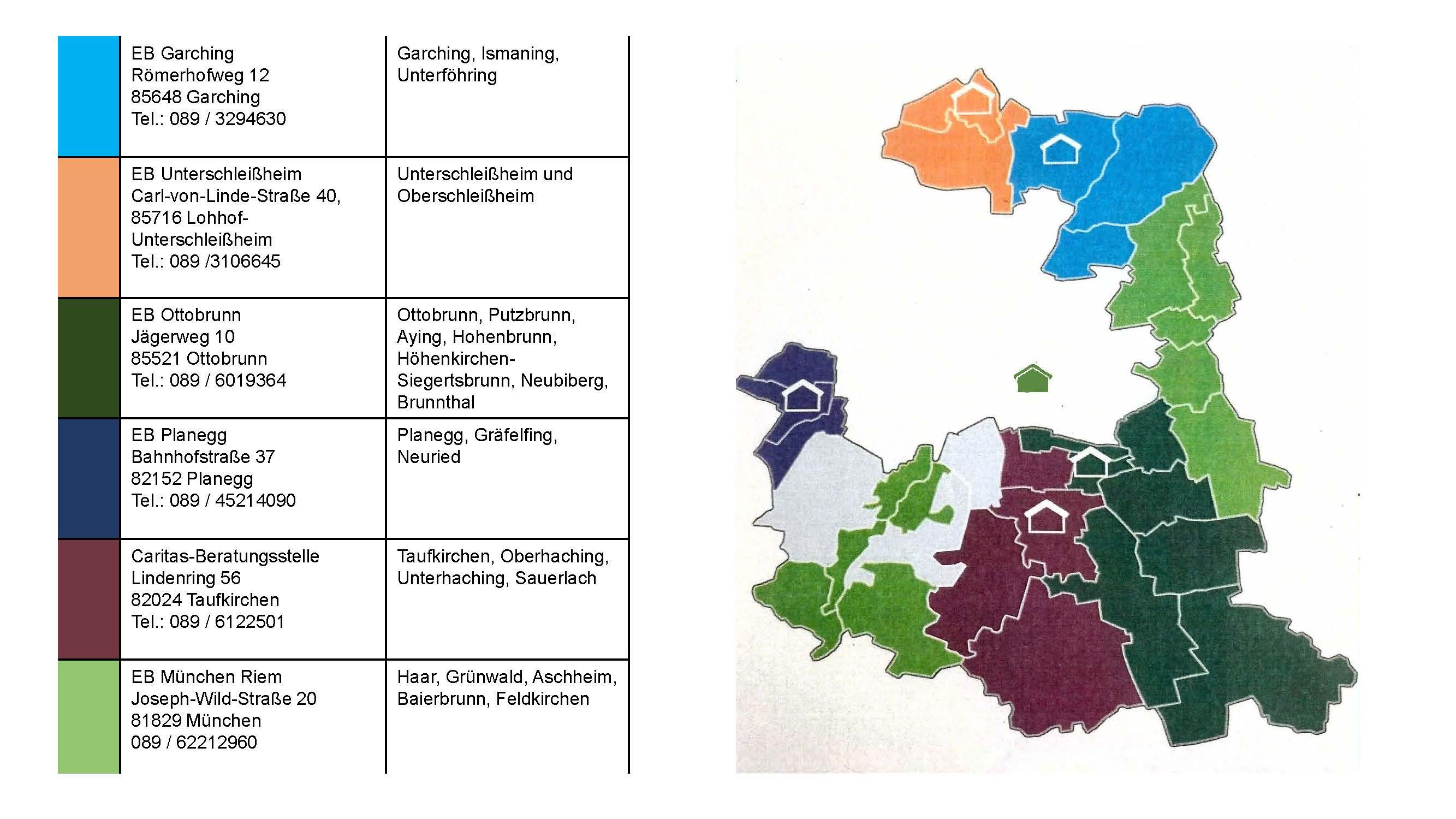 Hier auf der Karte finden Sie Ihre zuständige Beratungsstelle im Landkreis München Nord.