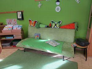 Auf unserem Sofa kannst du es dir gemütlich machen, dir ein Buch anschauen oder beim Vorlesen zuhören. Viele verschiedene Bilderbücher lassen dich in andere Welten und spannende Abenteuer eintauchen. Wir haben für dich neben dem Gruppenraum einen ganzen Raum, der hat eine Kinderküche, Puppen und -Sachen. Du kannst deiner Phantasie freien Lauf lassen, dir Freunde zum Spielen einladen.