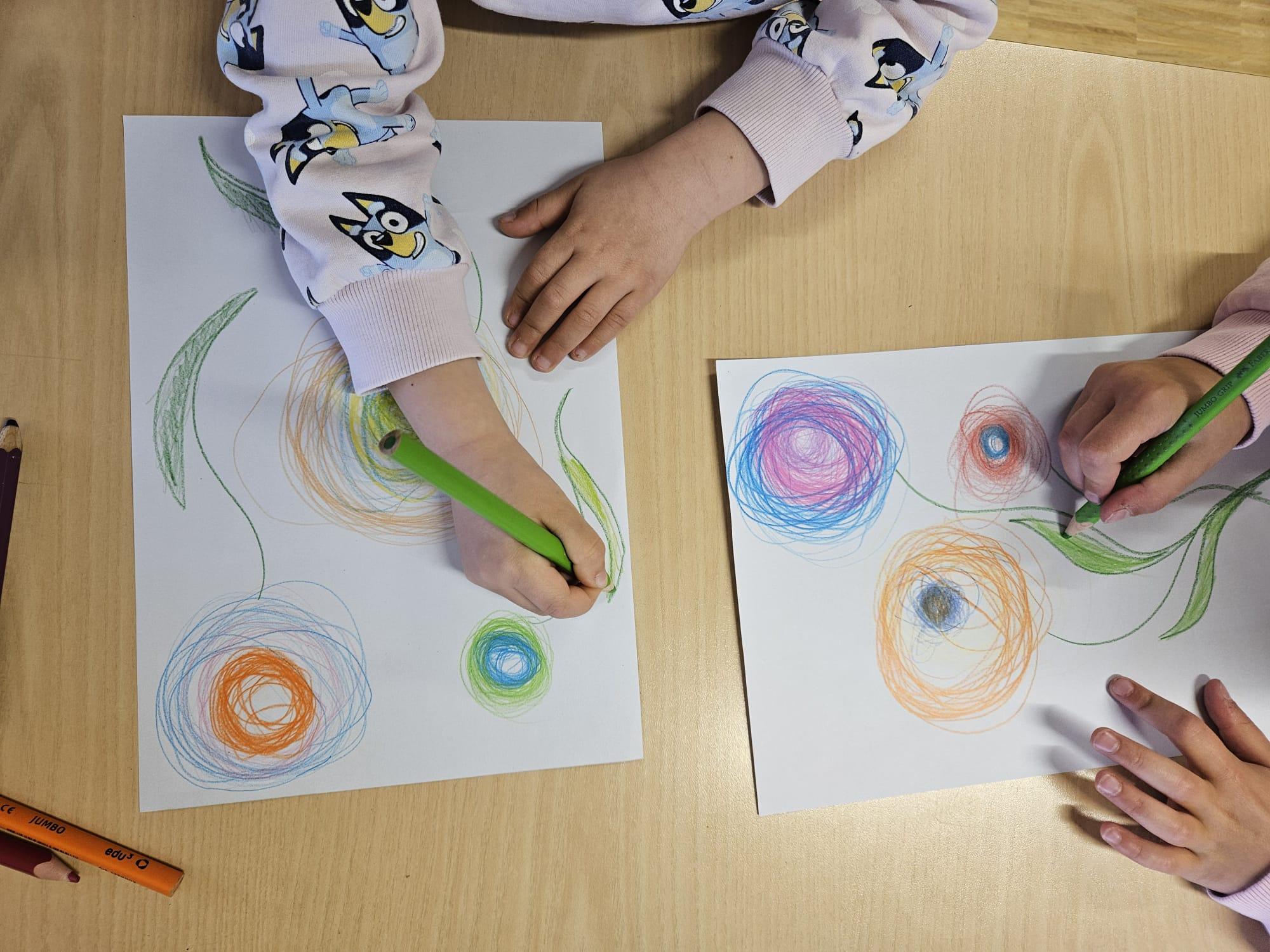 Unsere Tische im Gruppenraum sind nicht nur dafür da, um daran zu essen, sondern auch zum Spiele spielen, Puzzlen oder Malen und Basteln. Dafür haben wir genügend Materialien, wie Stifte, Scheren, Kleber, verschiedene Schablonen und Motivstanzer, sowie einen Mandala-Ordner zum Ausmalen. Deine gebastelten Schätze kannst Du dann an unsere “Gallerie-Wand" hängen, in Deinen Portfolio-Ordner einsortieren oder mit nach Hause nehmen.