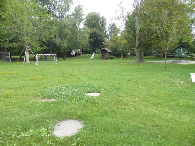 Unser Garten ist ein „Zauberwald“ mit uralten Bäumen, Büschen, Hügeln, Ecken, Lagern, ...mit vielfältigsten Möglichkeiten zu Spiel, Bewegung, Abenteuer, Beobachtung und Spaß. Mit Kletterturm und Kletternetz, Flugzeug, Vogelnestschaukel, Wippe, Spielhäuser, Rutsche, Swimmingpool, Sandspielbereiche, Spielgeräte u.v.m. Der Naturgarten und eine Terrasse bieten den Kindern viel Platz für uneingeschränkte Bewegung.