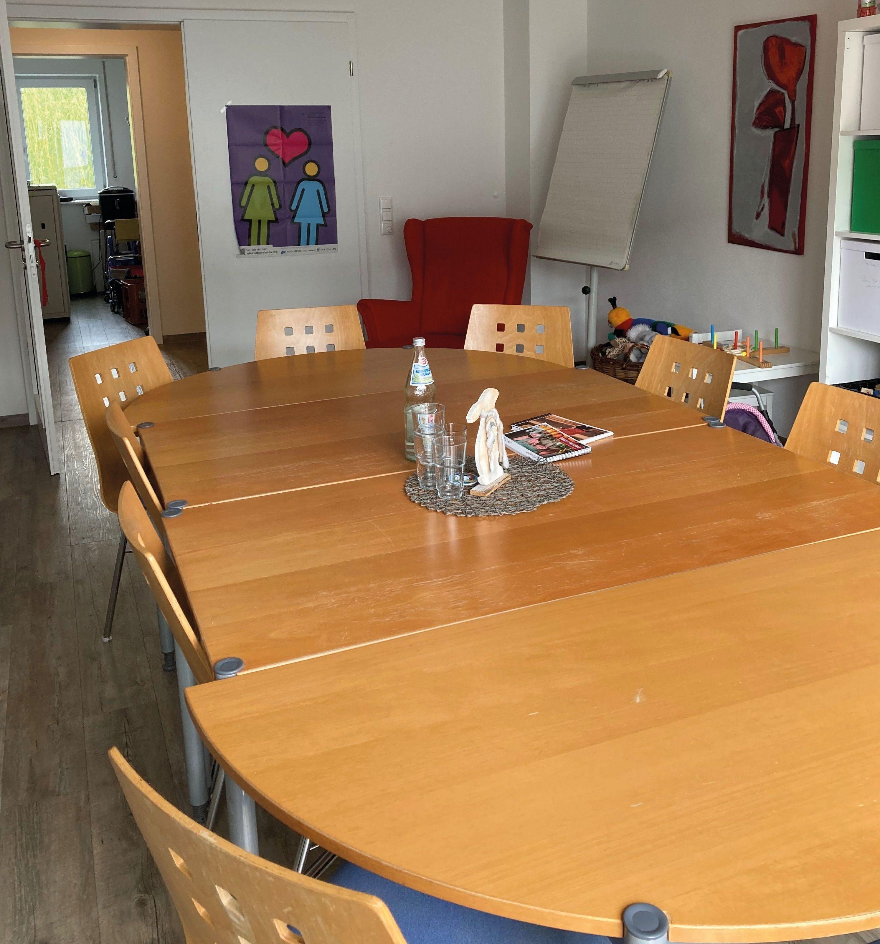 Neben der Beratung und den Workshops bietet Biste Bunt auch regelmäßig stattfindende Gruppentreffen für junge queere Menschen an. Die Treffen sind offen gestaltet und bieten Raum für verschiedene Aktivitäten. So werden Karten gespielt, Musik gehört und es wird einfach miteinander geredet. Bei den Treffen kann über queere Themen gesprochen werden, aber es ist kein Muss. Vielmehr ist es ein Ort, an dem sich junge Menschen austauschen und vernetzen können. In der Regel nehmen etwa acht Personen teil. Der Großteil ist schon lange dabei, aber es kommen auch immer wieder neue hinzu. Die meisten davon werden über Mundpropaganda auf Biste Bunt aufmerksam.