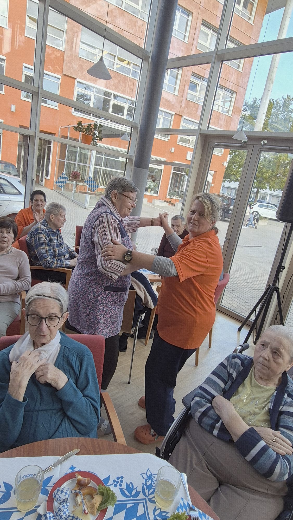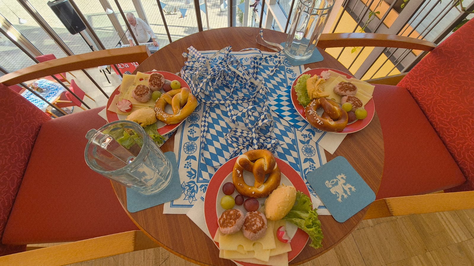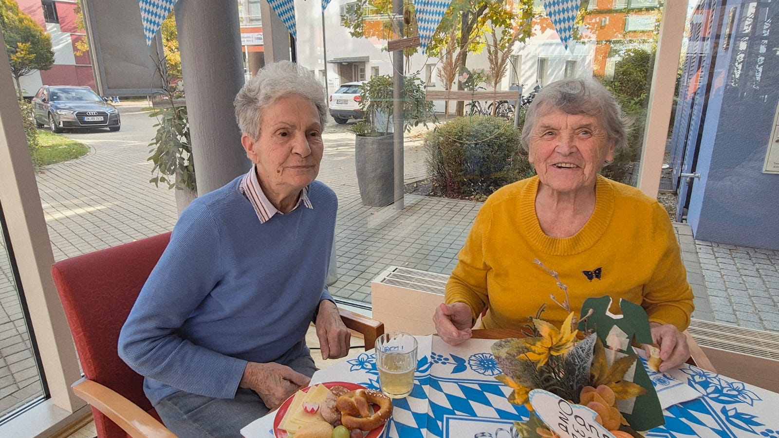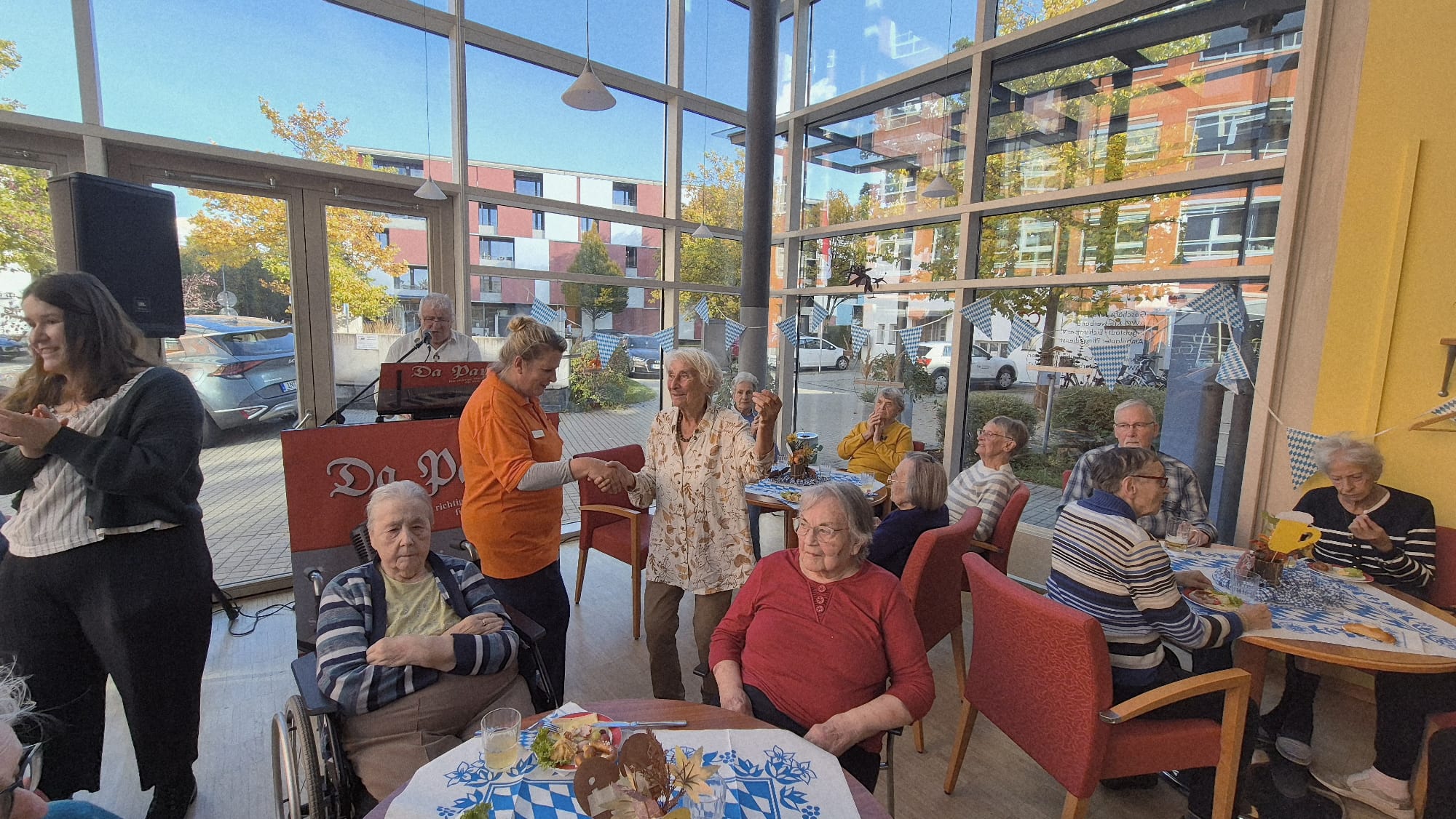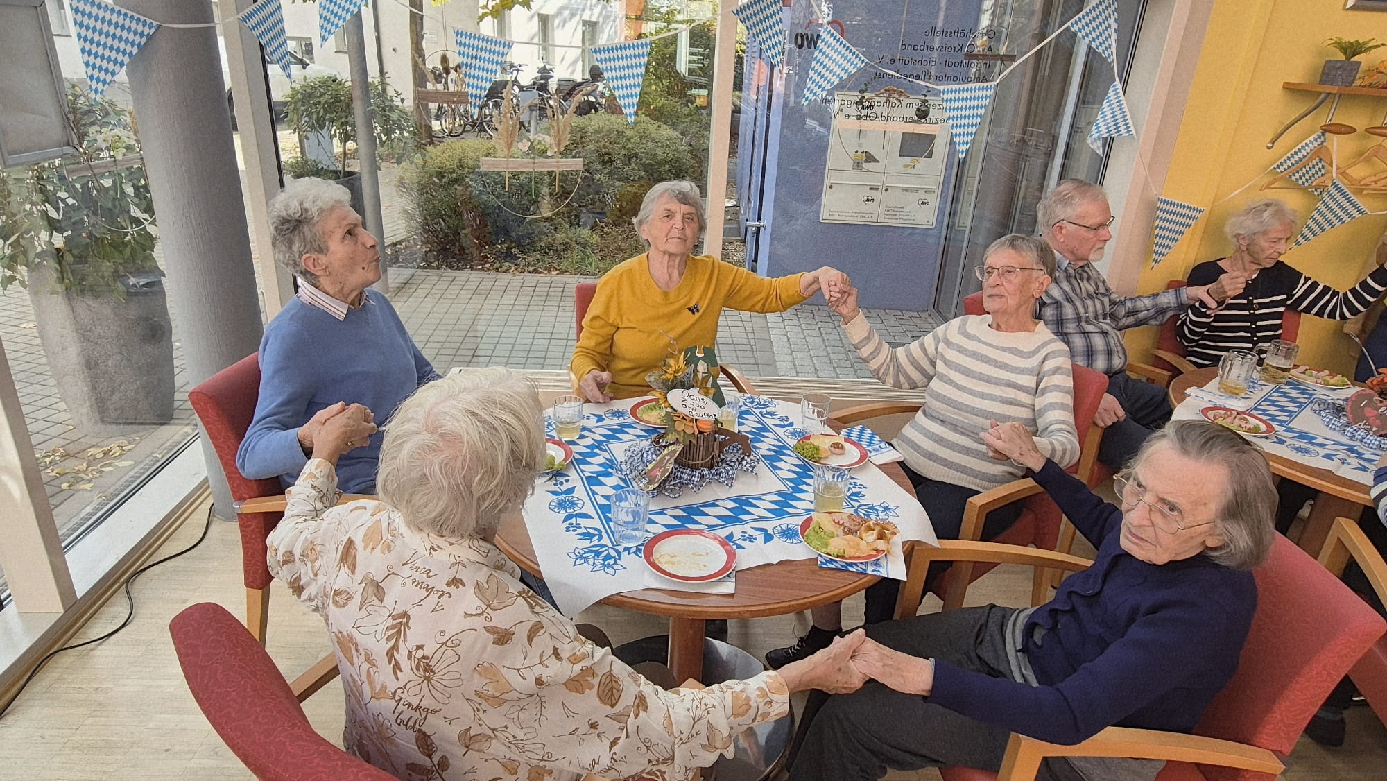 In unserer Cafeteria und der Galerie wurde vor Kurzem zünftig gefeiert - und zwar bei unserem diesjährigen Herbst- bzw. Oktoberfest! Schon beim Betreten der liebevoll geschmückten Räume kam echte Wiesn-Stimmung auf: bunte Herbstdekoration, blau-weiße Akzente und fröhliche Musik sorgten für eine festliche Atmosphäre.