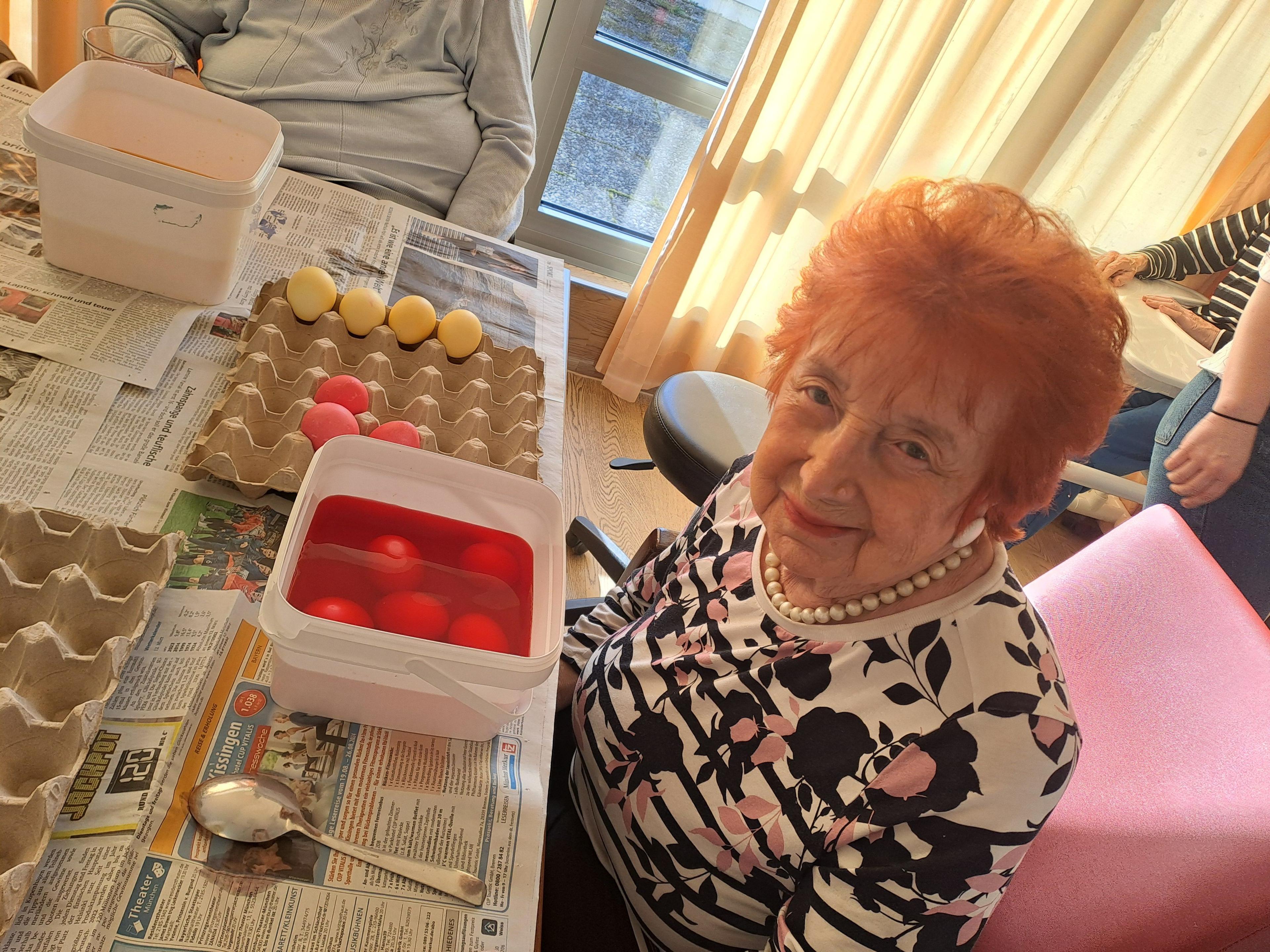 …war auch dieses Jahr wieder das Ostereierfärben auf dem Wohnbereich. In guter Gesellschaft und netter Musik ein schönes Nachmittagsangebot.