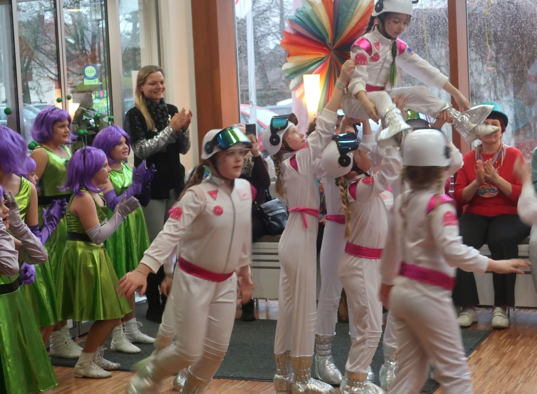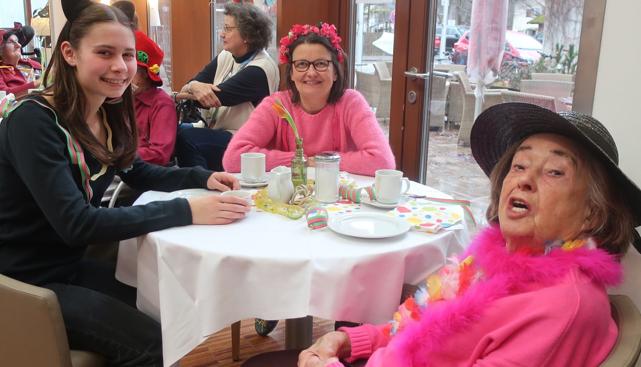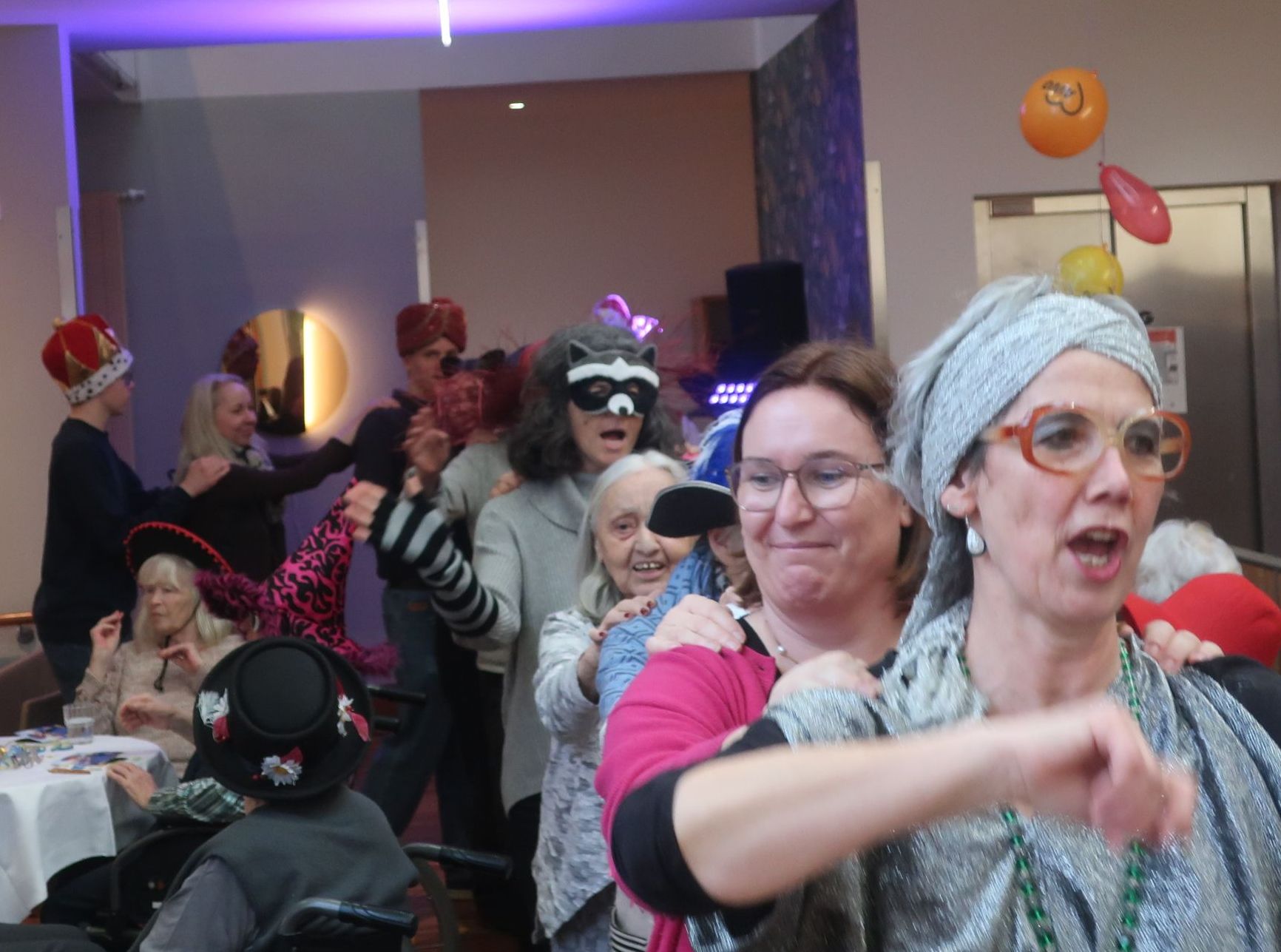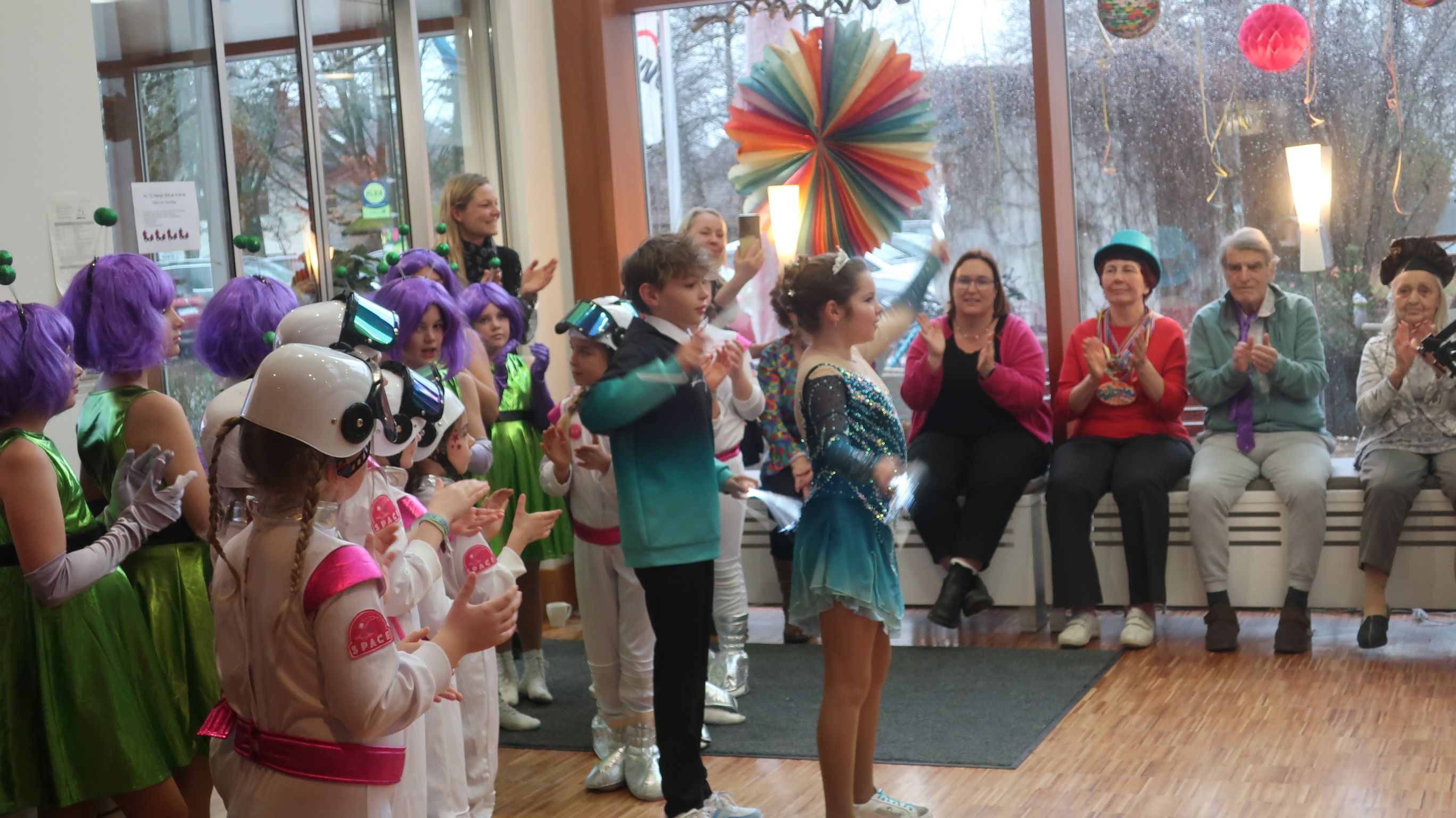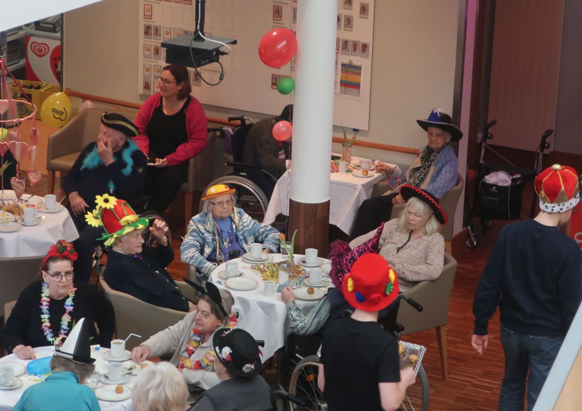 Es war einfach nur herrlich. Die Senior*innen kostümierten sich und es herrschte gute Laune. Es gab kleine, aber feine „Berliner“, Kaffee und Sekt. Aber nicht nur unsere Bewohner*innen tanzten, schunkelten und sangen, auch die Angehörigen und Mitarbeiter*innen waren euphorisch und es entstand ein schönes „Miteinanderfeiern“. Der Höhepunkt war dann der Besuch der Gmunder Seegeister. Über 20 Kinder und Jugendliche haben in wechselnden Kostümen und Formationen verschiedene Tänze und Akrobatik dargeboten. Auch die Überreichung eines Faschingsordens an die fleißigste Bewohner*in Frau Rahm und an unseren ehrenamtlichen Mitarbeiter Herr Leonhard und an unsere immer gutgelaunte Kollegin Frau Gordienko sorgte für Spaß und Applaus.