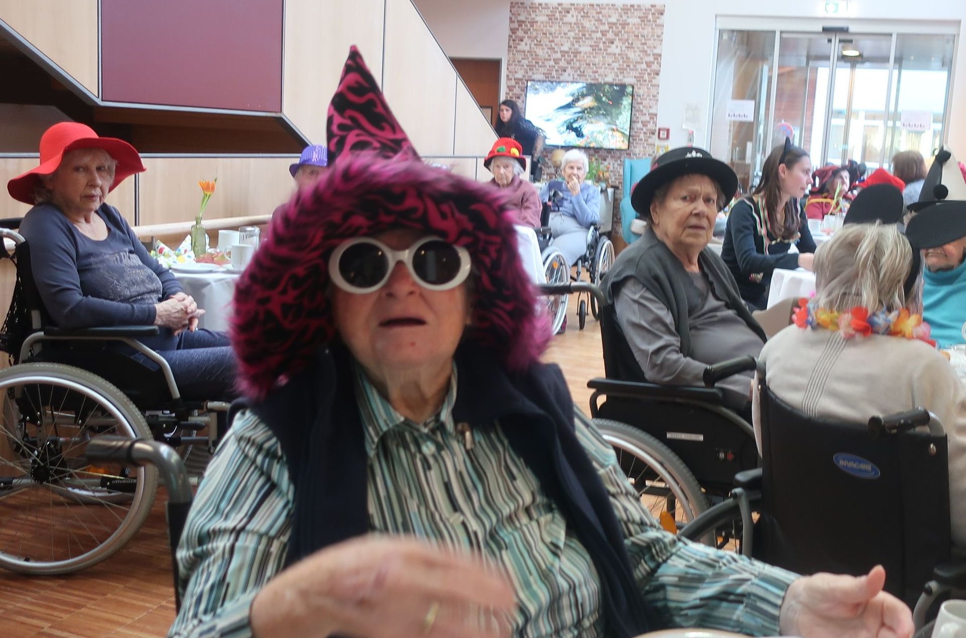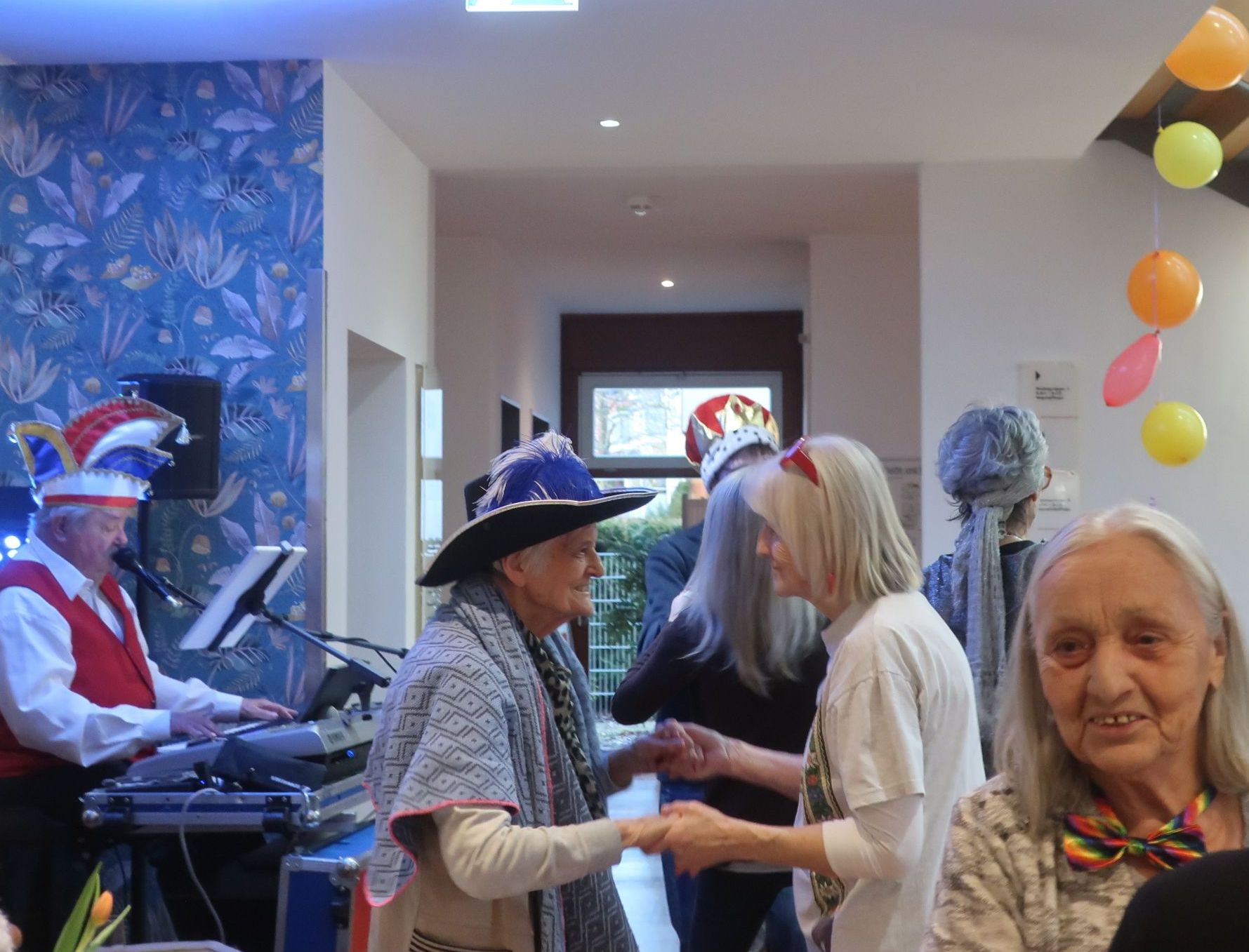 Doch dieses Jahr konnte man kein Faschingsmuffel sein. Das Seniorenzentrum ist mit bunten Fächern, Girlanden, Luftschlangen und Wimpeln geschmückt und am „unsinnigen Donnerstag“ startete die stimmungsvolle Faschingsfeier in der Cafeteria, mit Herrn Bätz am Keyboard.