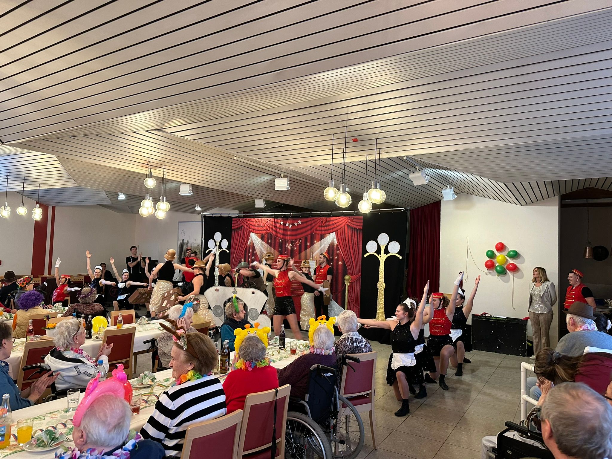 Am Rosenmontag folgte der Rosenmontagsball im Bürgersaal, bei dem das Musiker-Dou „De Zwee“ aus Traunwalchen für eine ausgelassene Stimmung sorgten. Als besonderes Highlight traten die Gardentänzer aus Grabenstätt auf und zeigten eine eindrucksvolle Show zum Thema „Glamour“. Die Bewohnerinnen und Bewohner waren sehr beeindruckt über diese Darbietung. Zum Abschluss dieses Tages ließen sich die Bewohnerinnen und Bewohner ein Abendessen im Bürgersaal schmecken.