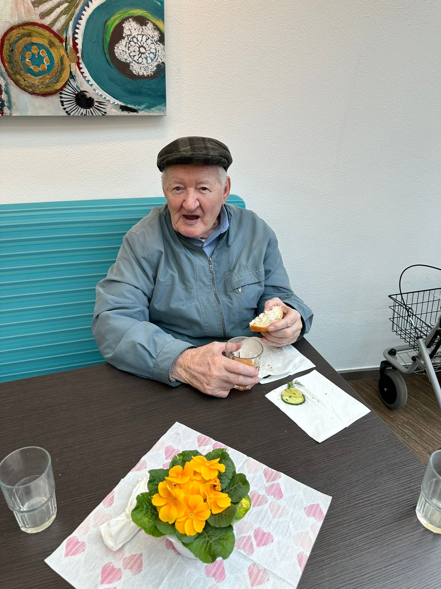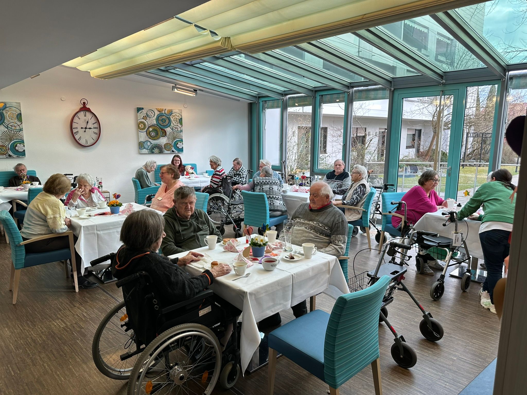 Der dritte Akt der Feierwoche war das Fischessen zum Aschermittwoch, bei dem sich die anwesenden Personen Fisch- und Käsesemmeln schmecken ließen. In diesem Jahr war der 14. Februar nicht nur der Aschermittwoch, sondern an diesem Tag wurde ebenfalls der Valentinstag gefeiert. Daher waren alle Bewohnerinnen und Bewohner zu einem Kaffeetrinken in der Cafeteria an diesem Mittwochnachmittag eingeladen. Dafür wurden im Vorhinein in den Beschäftigungsgruppen Herzen gebastelt, welche sich als Dekoration auf den Tischen wiederfanden.